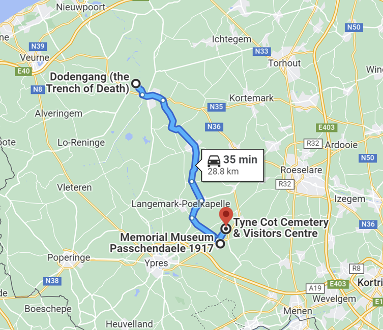 During my France and Belgium motorcycle trip (Jul-22), I spent a day riding around Ypres in West Flanders, Belgium. It was an important site in WW1. I have marked the three key sites I visited in map (below) if you want to ride/drive this route. There are many other war landmarks in the area if you want to cover more.